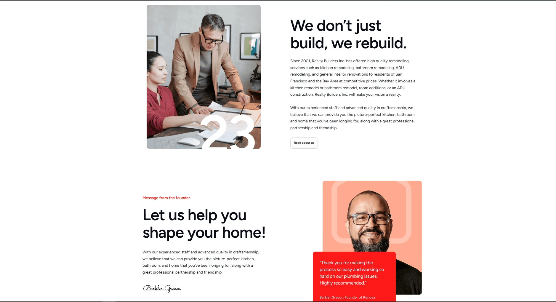 Renova is a modern, clean website built for a local renovation company. The site showcases their services, portfolio, and customer testimonials while driving leads through clear CTAs. Designed to reflect their professional and trustworthy brand, the site makes it easy for clients to explore services and get in touch.
